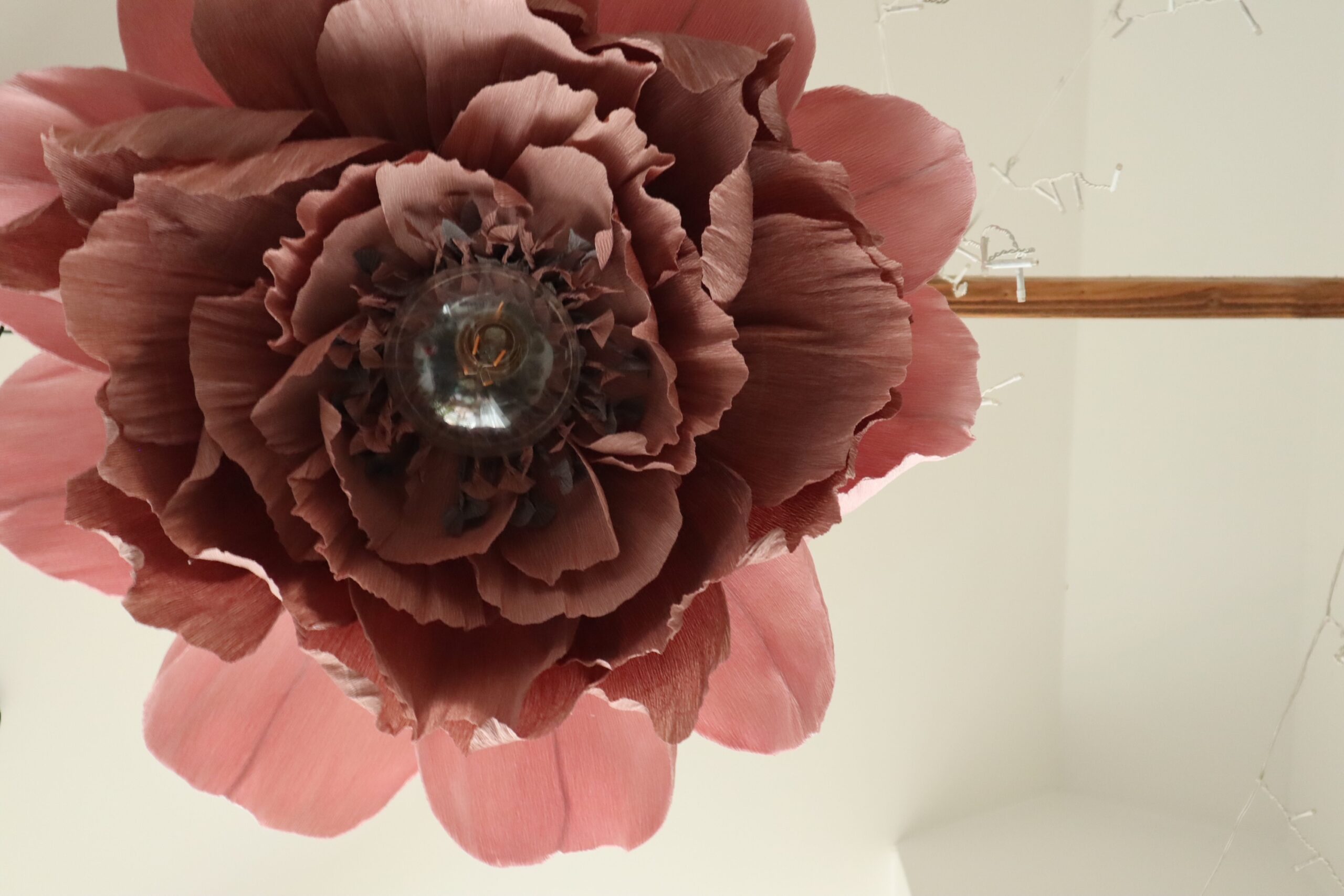 Lampa z włoskiej krepiny to unikatowa, ręcznie robiona dekoracja, która łączy funkcję oświetlenia z efektowną, kwiatową formą przestrzenną. Każdy egzemplarz powstaje na zamówienie z najwyższej jakości włoskiej krepiny, dzięki czemu zachwyca lekkością, detalem i naturalnym wyglądem płatków.